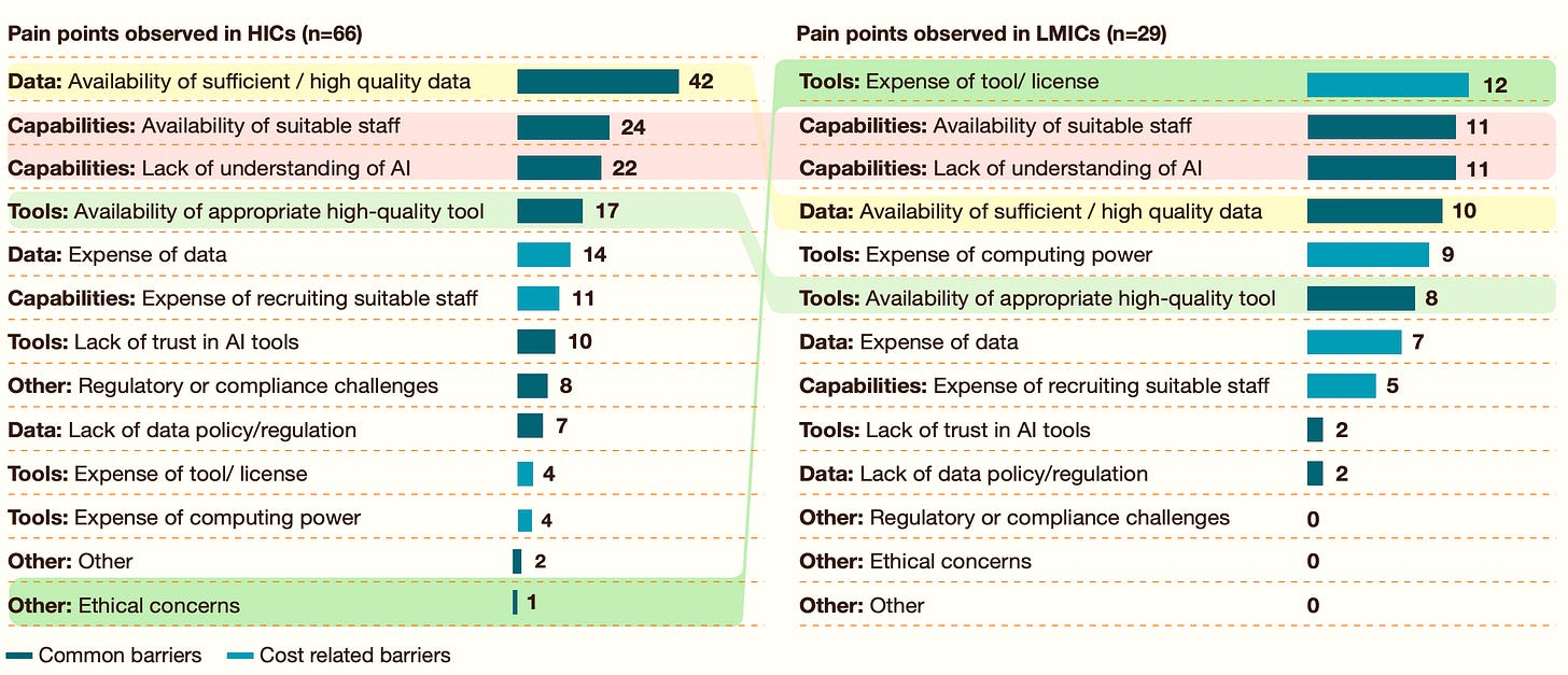 📌 For high income countries, the largest pain point is the availability of large high-quality data for