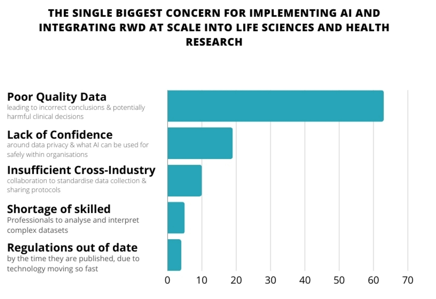 📌 63% of respondents expressing concern that poor data quality could lead to incorrect AI conclusions and potentially harmful clinical decisions.
