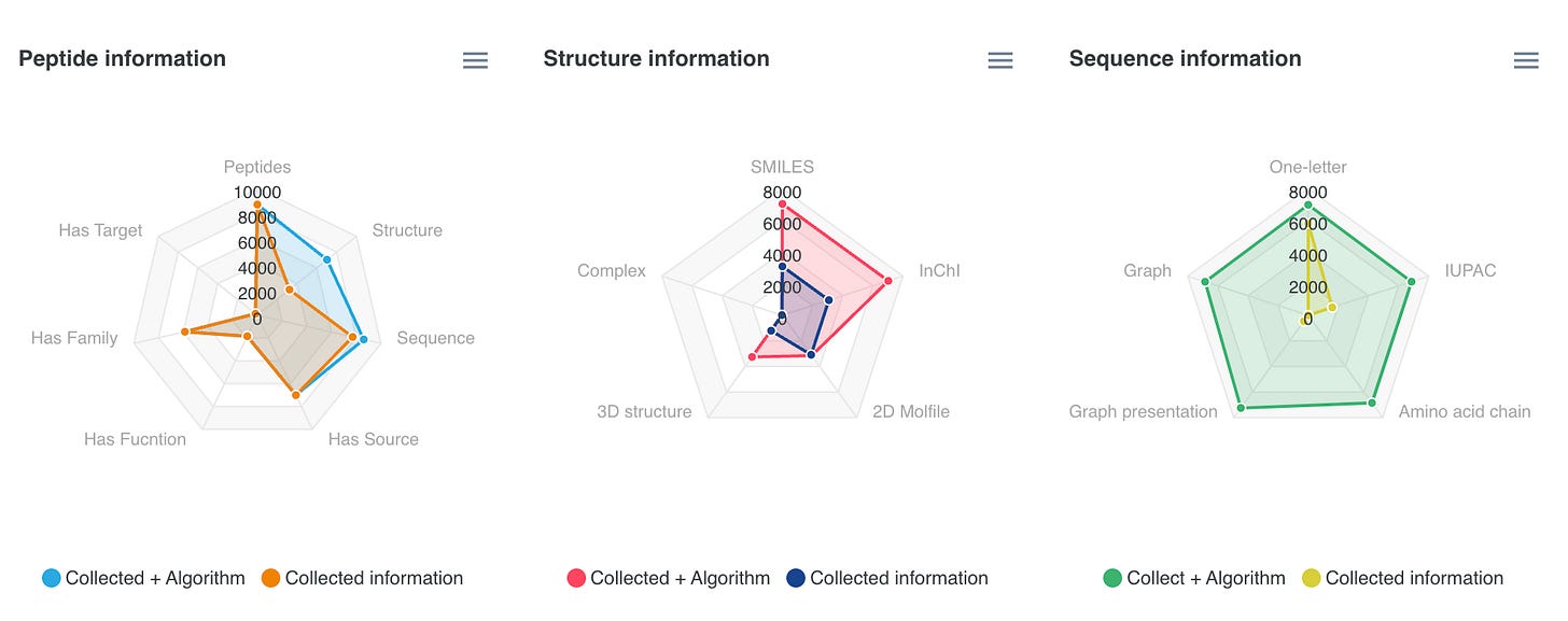 Bu how can you easily find information on cyclic peptides? Look no further! CyclicPepedia is a database that encompasses both synthetically derived and naturally occurring cyclic peptides, totalling 8,744 known cyclic peptides with summaries, structures, sequences, properties, assays, targets, prediction tools, manufacturers, external links, and relevant literature! Peptides are collected from various sources: