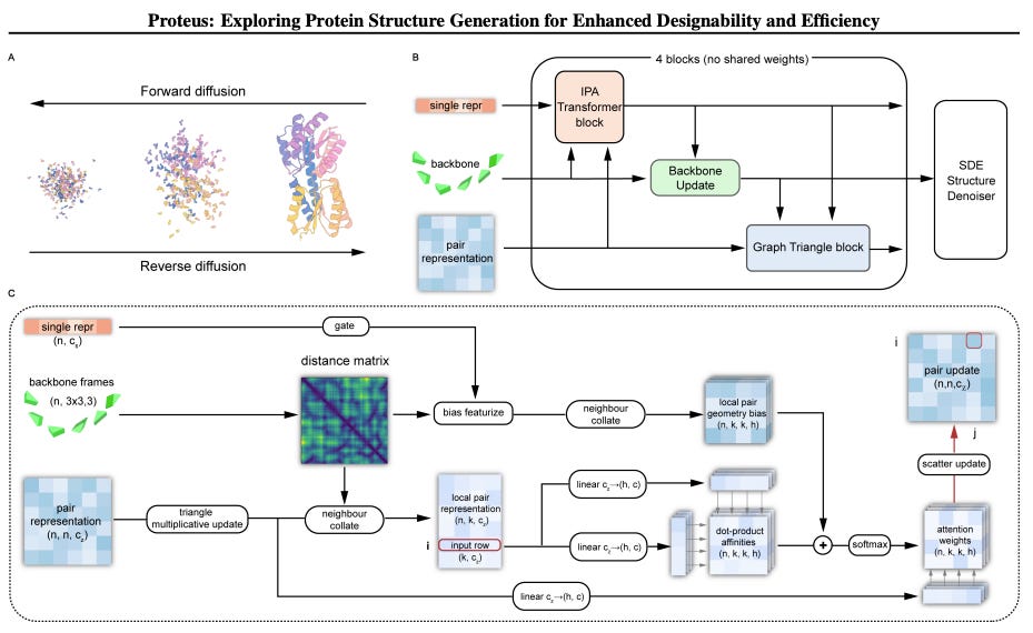Another week has passed โฆ and another protein model has been released! Proteus uses a diffusion method trained on 50,773 single-chain proteins form PDB to generate de novo protein backbones โฆ but at a fraction of the speed of state-of-the-art models!