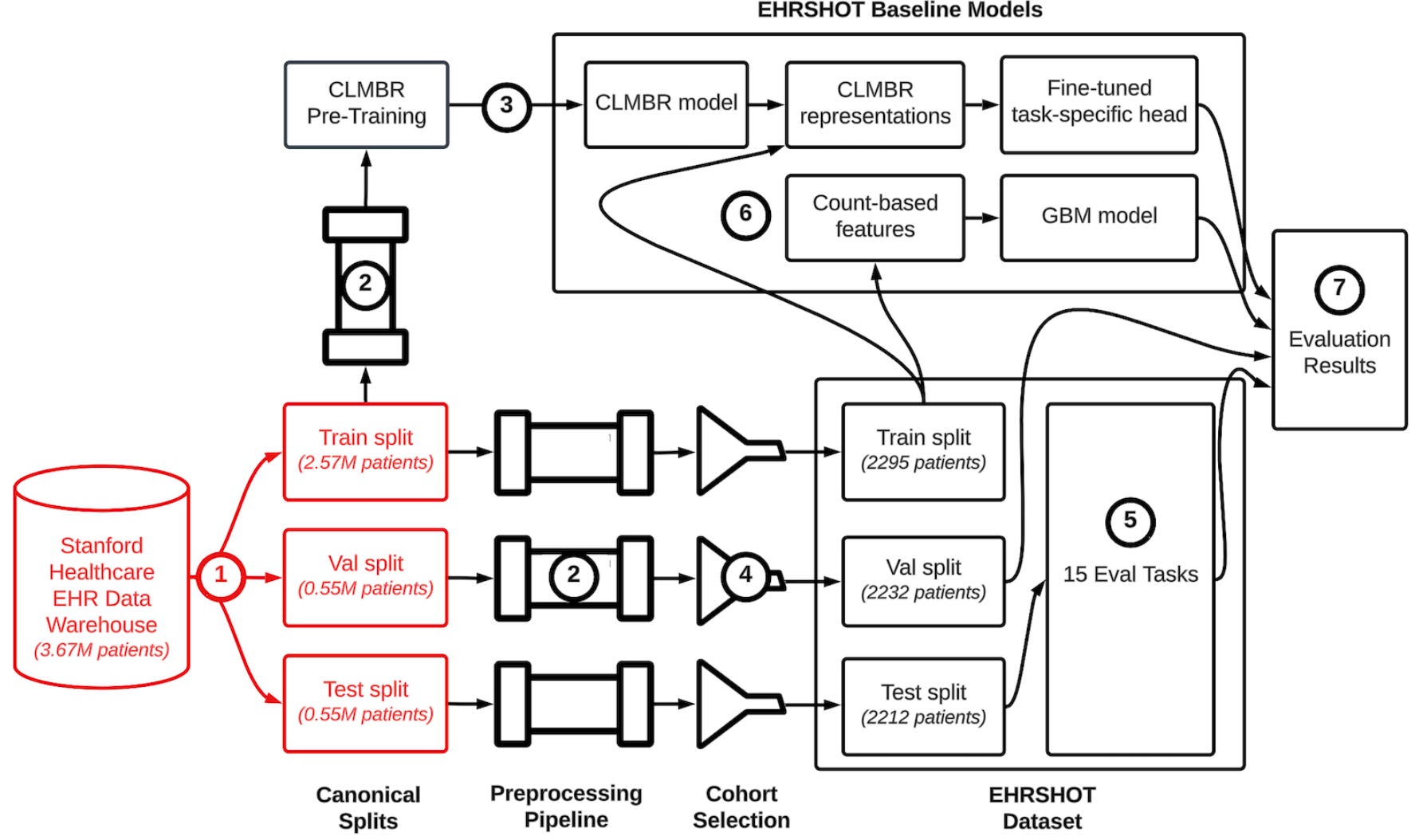AI models can become as good as the data used for training. Then โฆ how easy is to find open-source clinical data? Yesterday it was difficult, today we have EHRSHOT, a dataset of 6,739 de-identified longitudinal EHRs based on OMOP! EHSHOT comes equipped with data, bechmark and models!