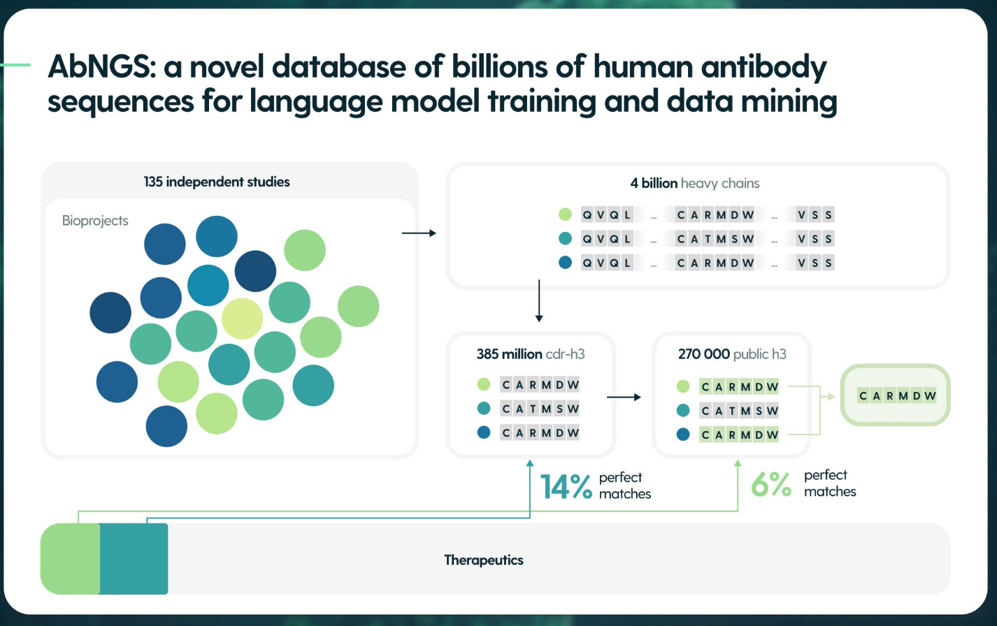 📌 It contains ~3b unique sequences (~2.1b heavy, ~370m light) from 135 human studies and 826 therapeutic antibodies