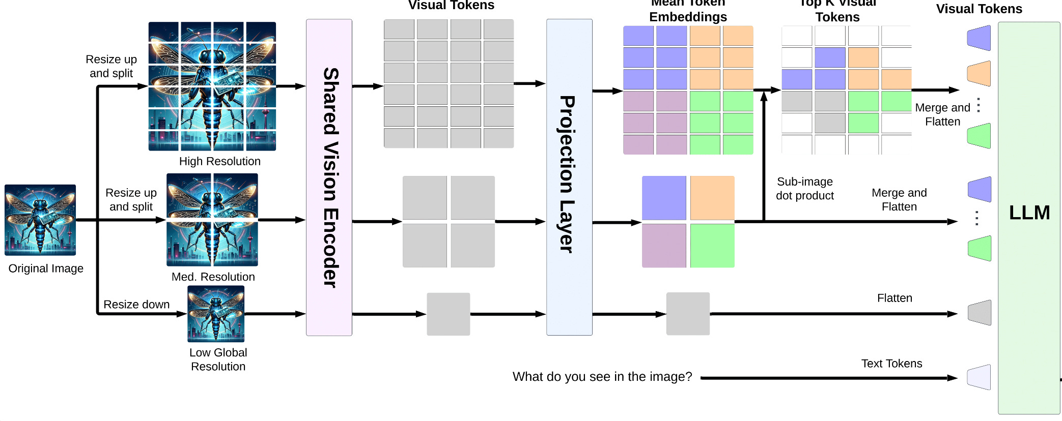 📌 As opposed to focus on an entire large image (which is resource-intensive), DragonFly splits the image into multiple resolutions and sub-images, making it easier and faster to "zoom in" a specific location