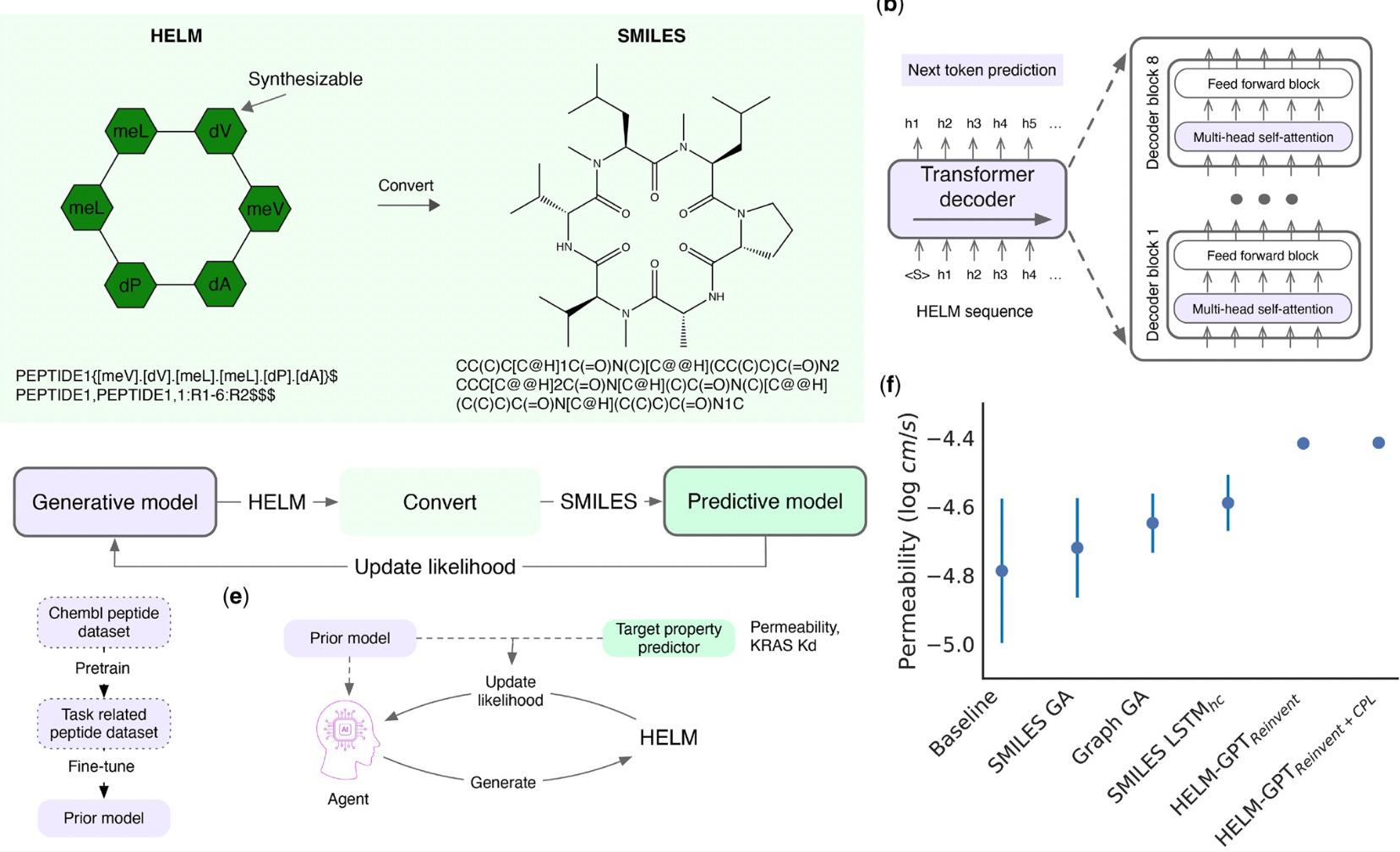 📌 HELM-GPT beats several models in optimising macrocyclic peptides for cellular permeability