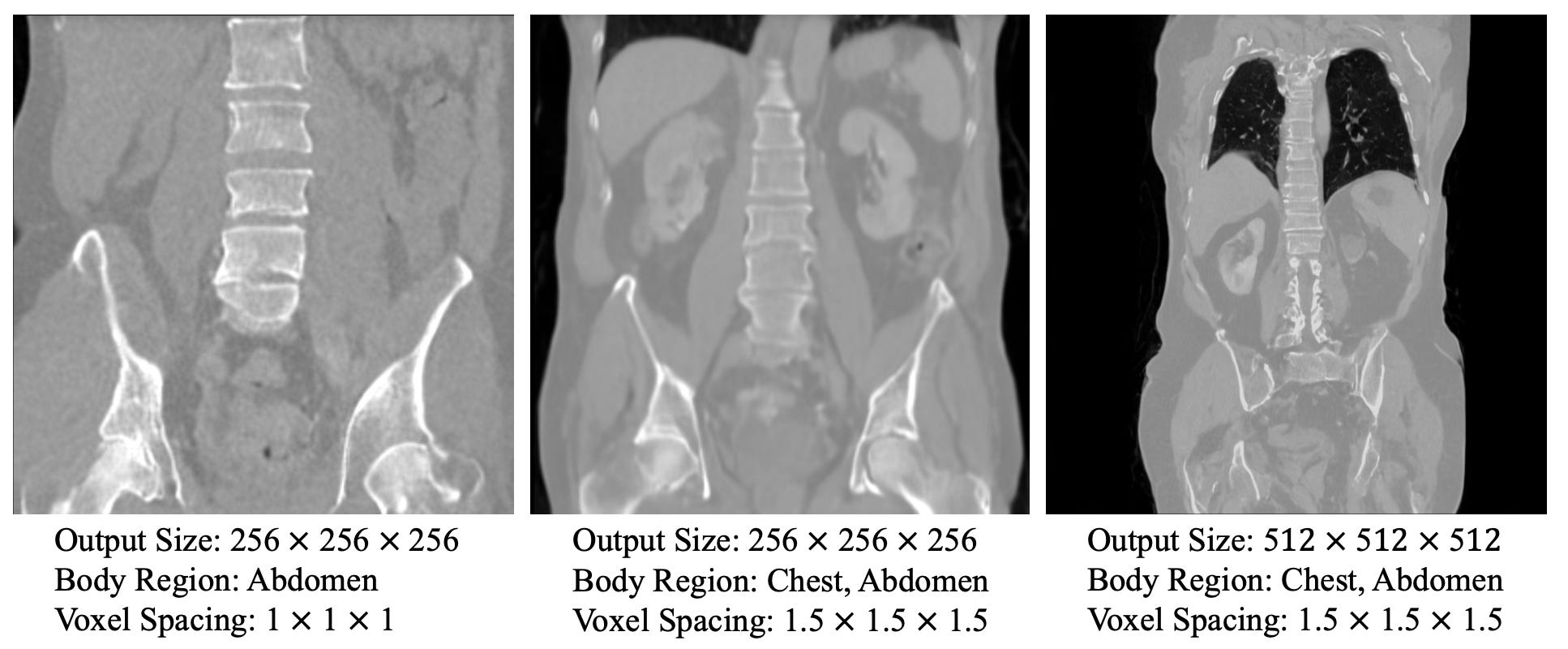 Generating both CT and MRI scans with flexible volume size and voxel size