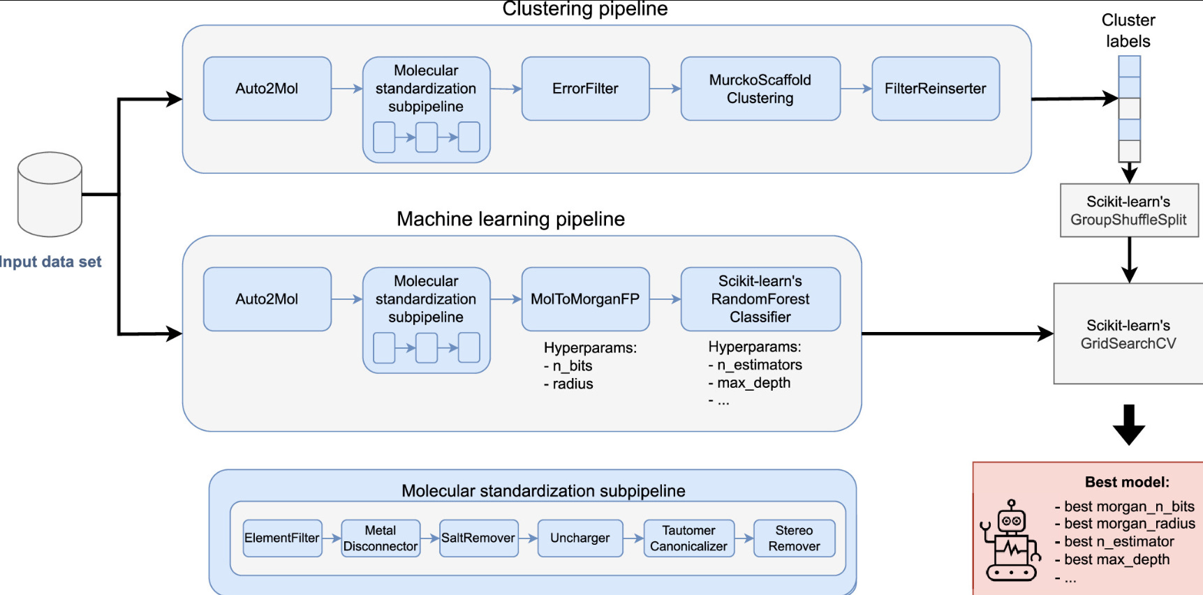 New pipeline, implementing standard cheminformatics tasks using RDKit while complying with scikit-learn’s pipeline API.