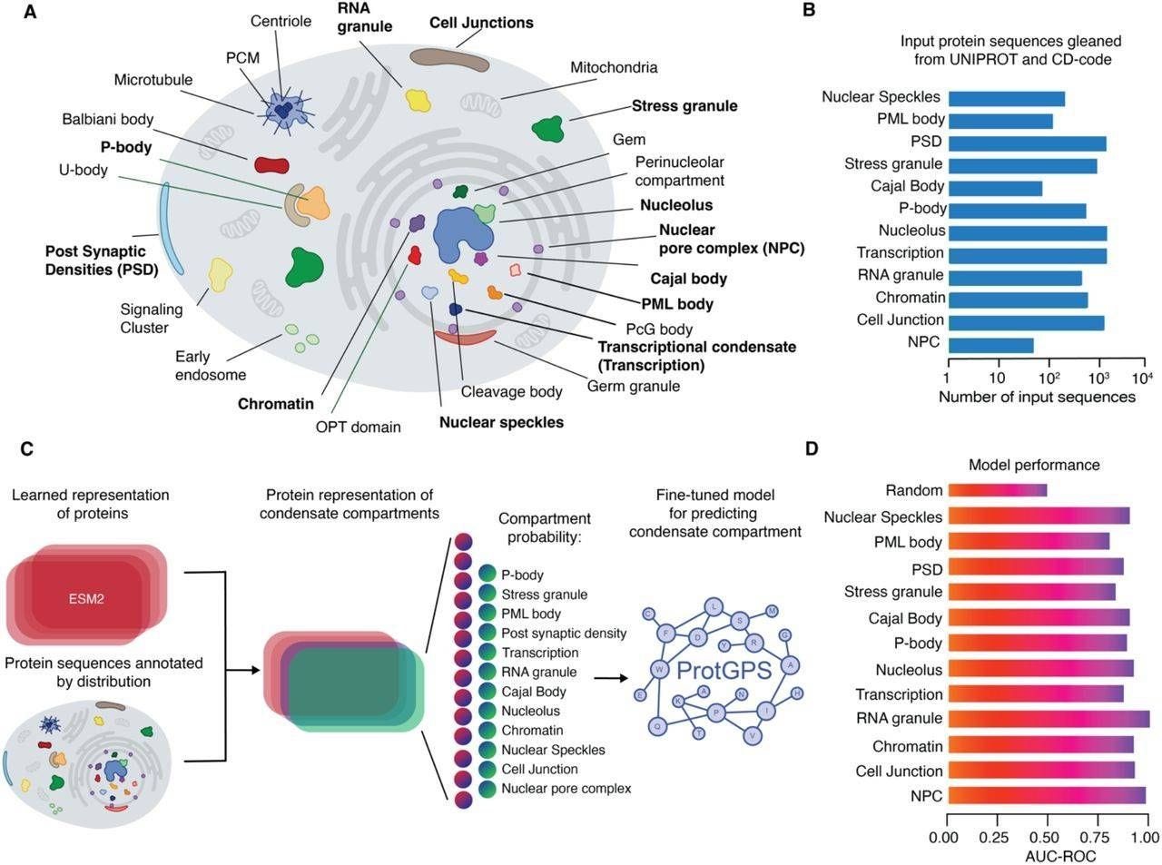 Proteins function within specific regions of a cell, and their correct localization is essential for proper cellular activity. Previously, scientists believed that proteins reached these compartments primarily through structural mechanisms. However, recent research has revealed that a protein’s precise localisation is just as crucial as its function, as mislocalisation is linked to severe diseases, including neurodegenerative disorders and various cancers. Introducing ProtGPS—a deep-learning model that accurately predicts the subcellular destinations of human proteins, offering new insights into cellular organisation and disease mechanism.