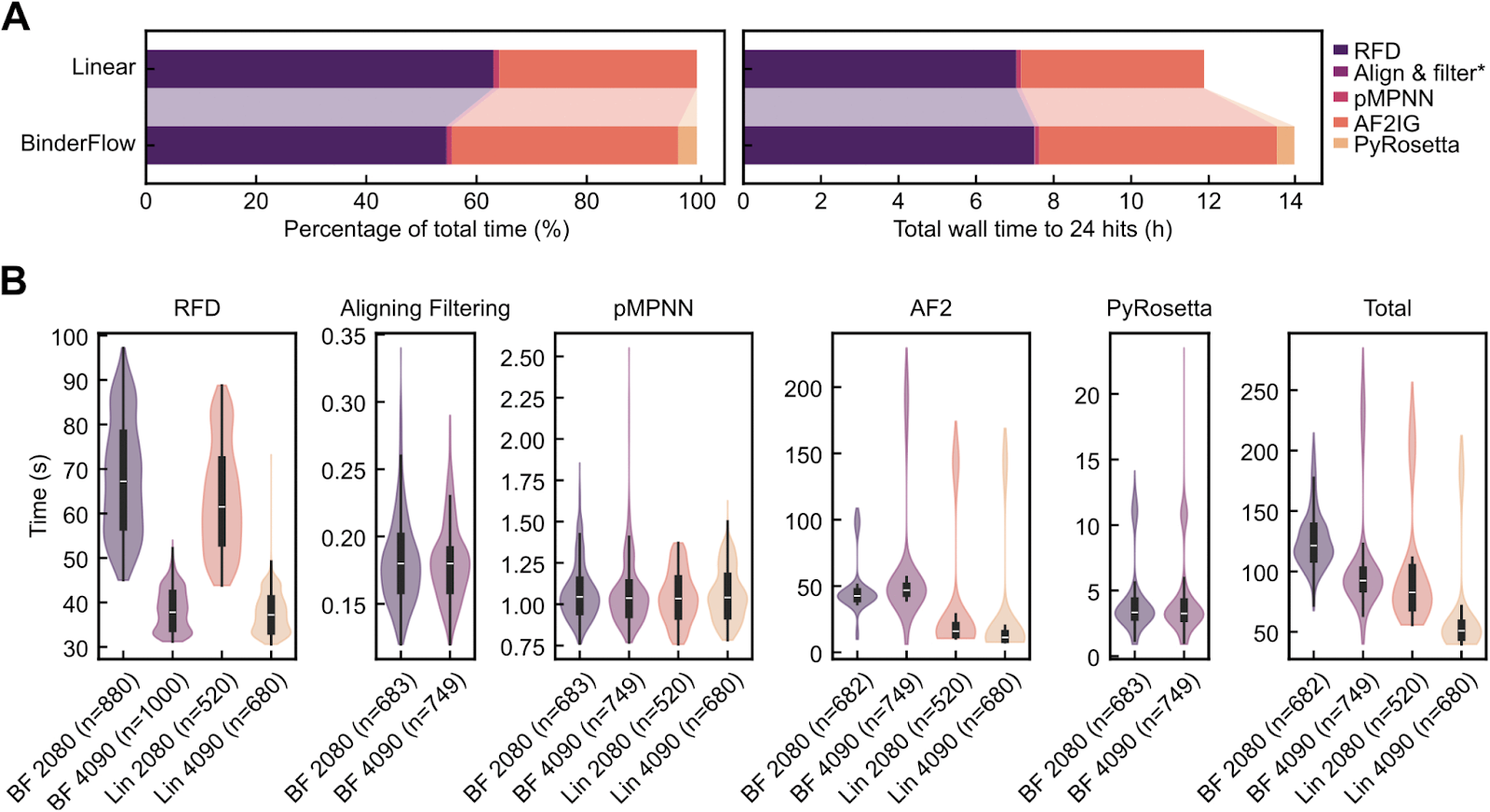 BinderFlow is careful about what it claims. It does not promise to be faster in every case. Splitting work into small batches can increase per-design overhead, particularly during structure prediction.