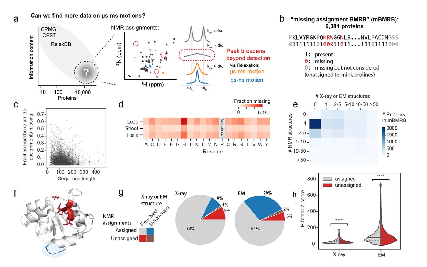 The breakthrough came from looking at what is missing in NMR spectra. Some residues that cannot be assigned might be missing for a number of reasons; however, one systematic reason a peak might disappear and not be assigned is because the residue is exchange-broadened, flipping between states on the µs-ms timescale.