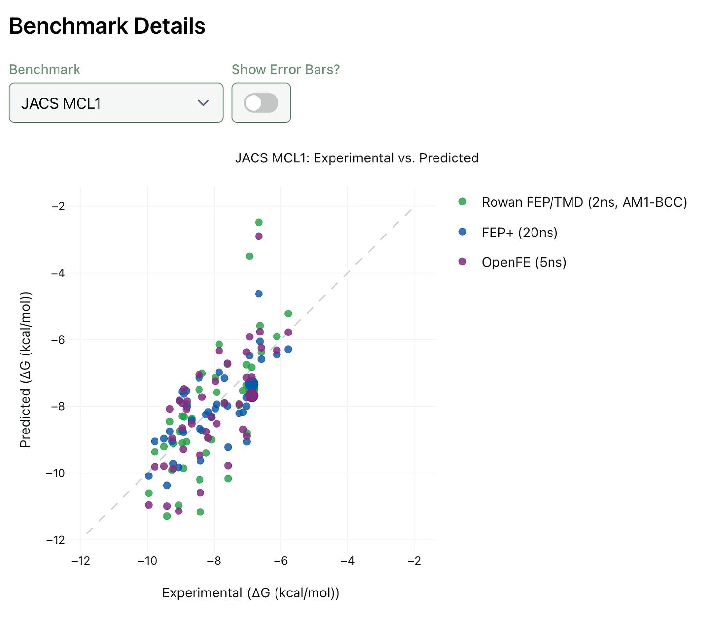 But the metric that matters most in practice isn’t absolute energy prediction, it’s ranking. If FEP correctly tells you which compounds will bind better and which won’t, you’ve saved synthesis cycles regardless of whether the exact energy numbers are perfect. And on ranking, the performance gap narrows considerably.