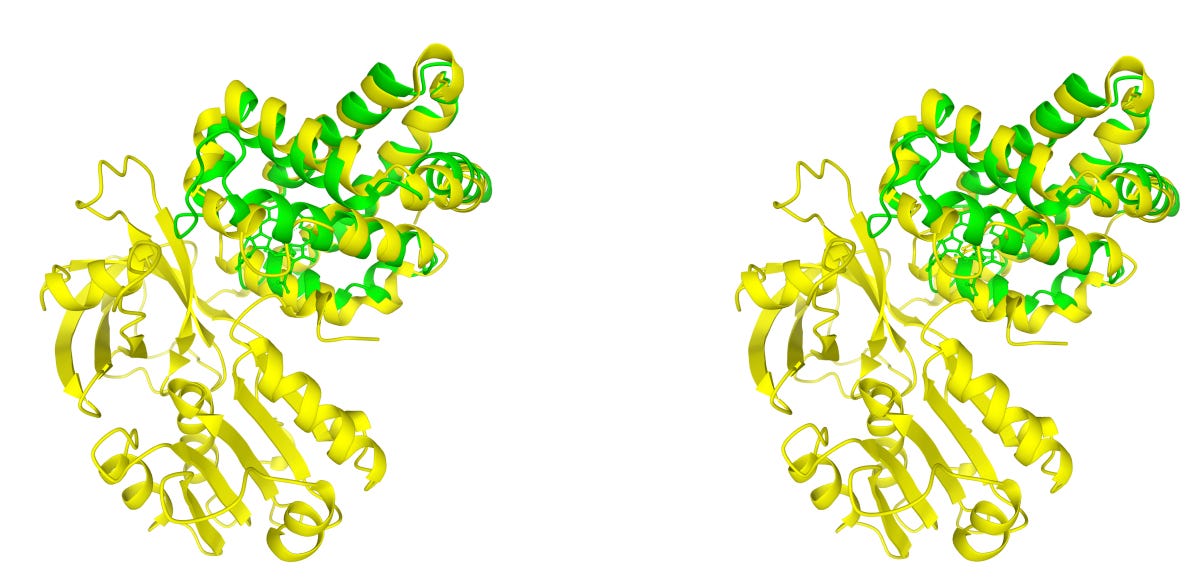 Structome-TM identifies homologues that global metrics overlook. A globin domain that scores only 0.213 under a sequence-based global alignment shows a TM-score of 0.803, correctly revealing its evolutionary relationship.