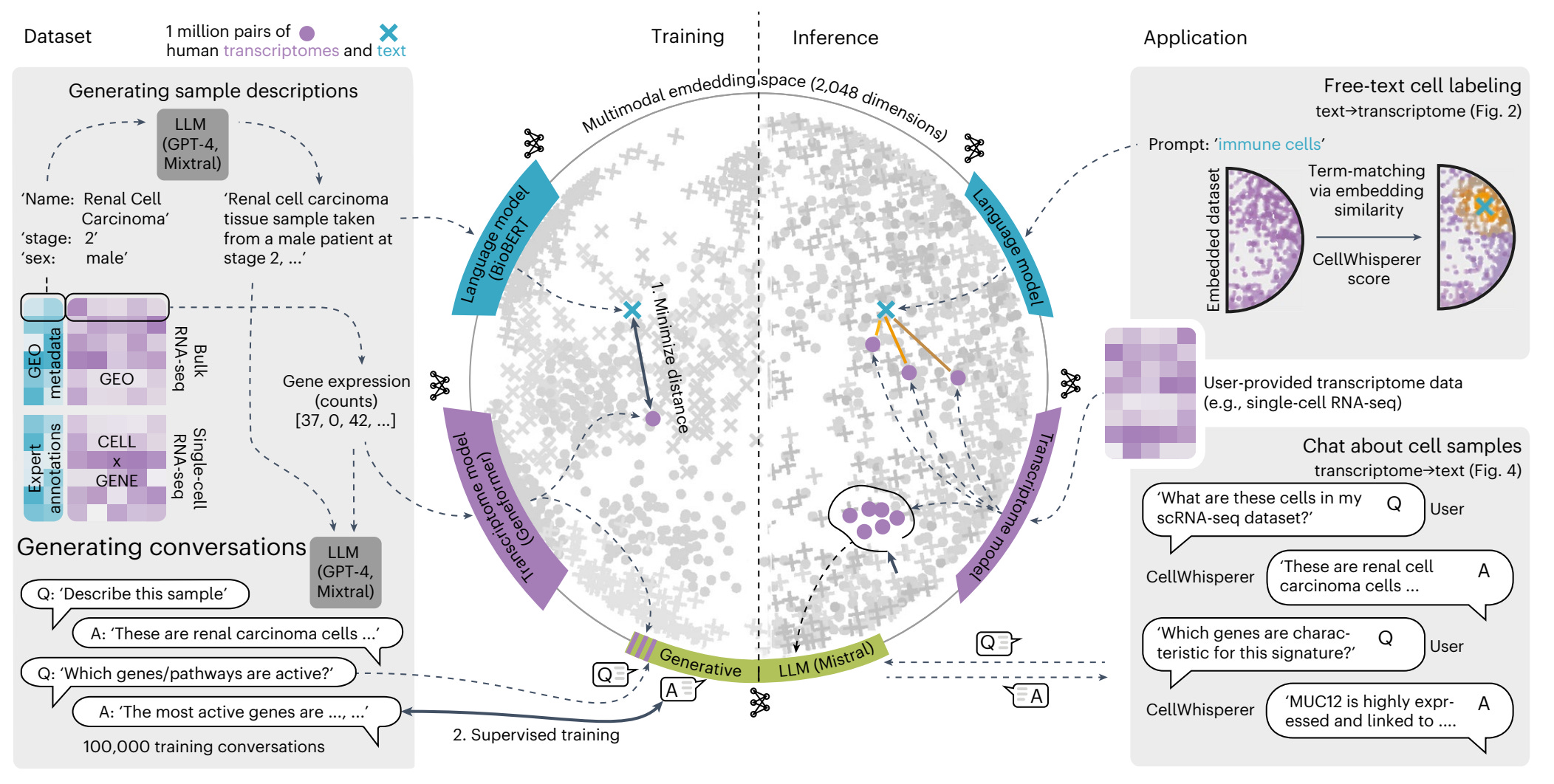 Integrated directly into the CELLxGENE browser, CellWhisperer enables seamless switching between visual exploration and interactive chat, helping users search, annotate, and reason about cells within one interface.